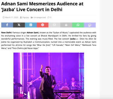 Jazbaa : Dilon Se Dilon Ko Jodne Ka is the flagship initiative of Rudraksha Communication, created with the vision of connecting hearts through the universal language of music. It is a celebration of culture, community, and soulful expression — bringing people one step closer through the magic of live-in-concert experiences with renowned and beloved singers.